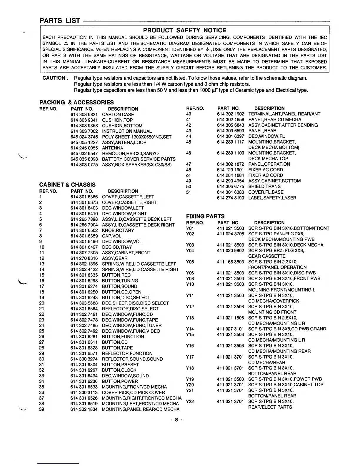 OR PARTS WITH THE SAME RATINGS OF RESISTANCE, WAITAGE OR VOLTAGE THAT ARE DESIGNATED IN THE PARTS LIST