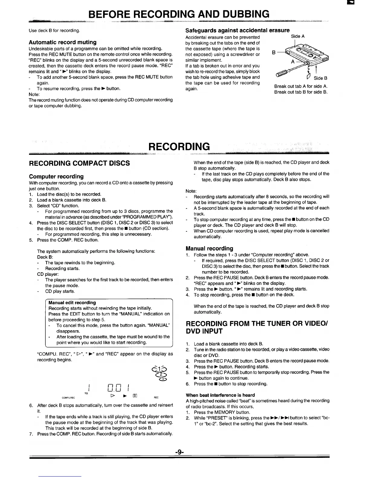 Press the COMP. REC button. Recording of side B starts automatically.