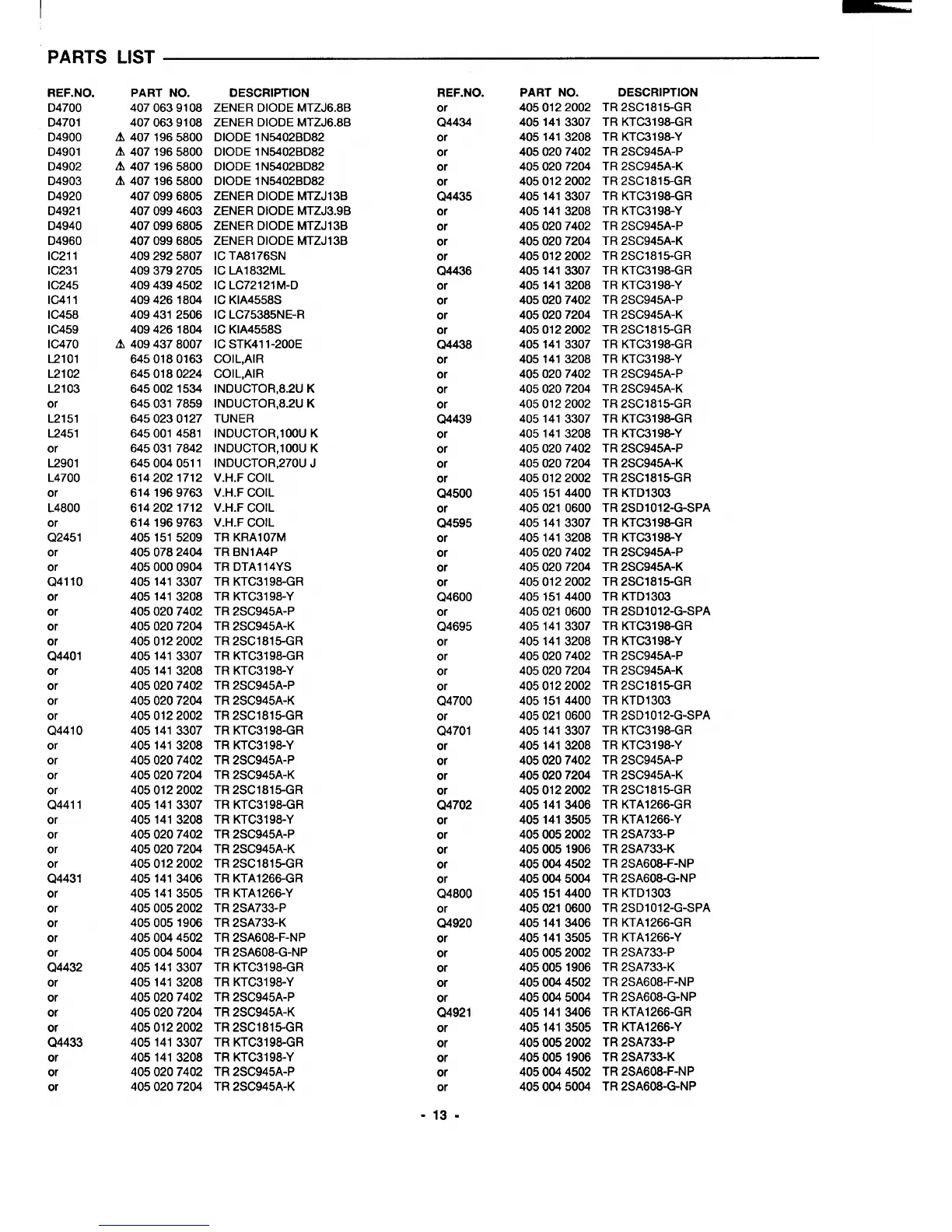 PARTS LIST