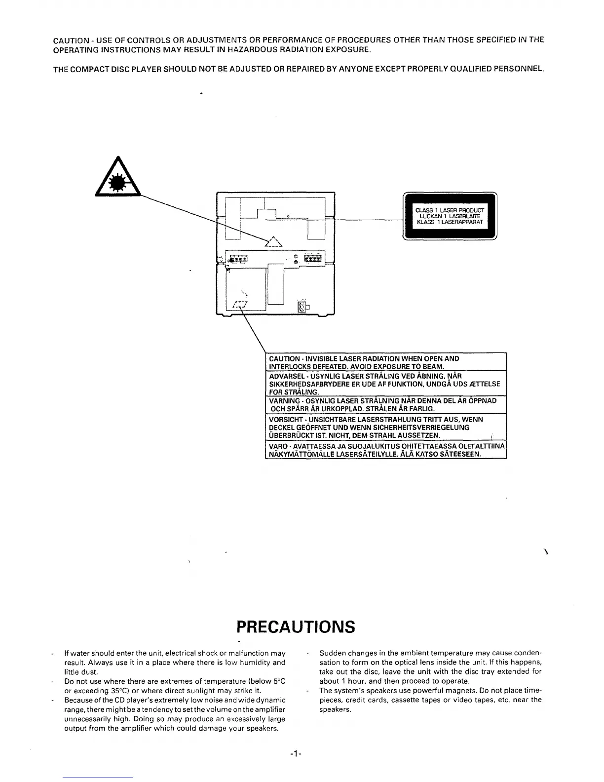 THE COMPACT DISC PLAYER SHOULD NOT BE ADJUSTED OR REPAIRED BY