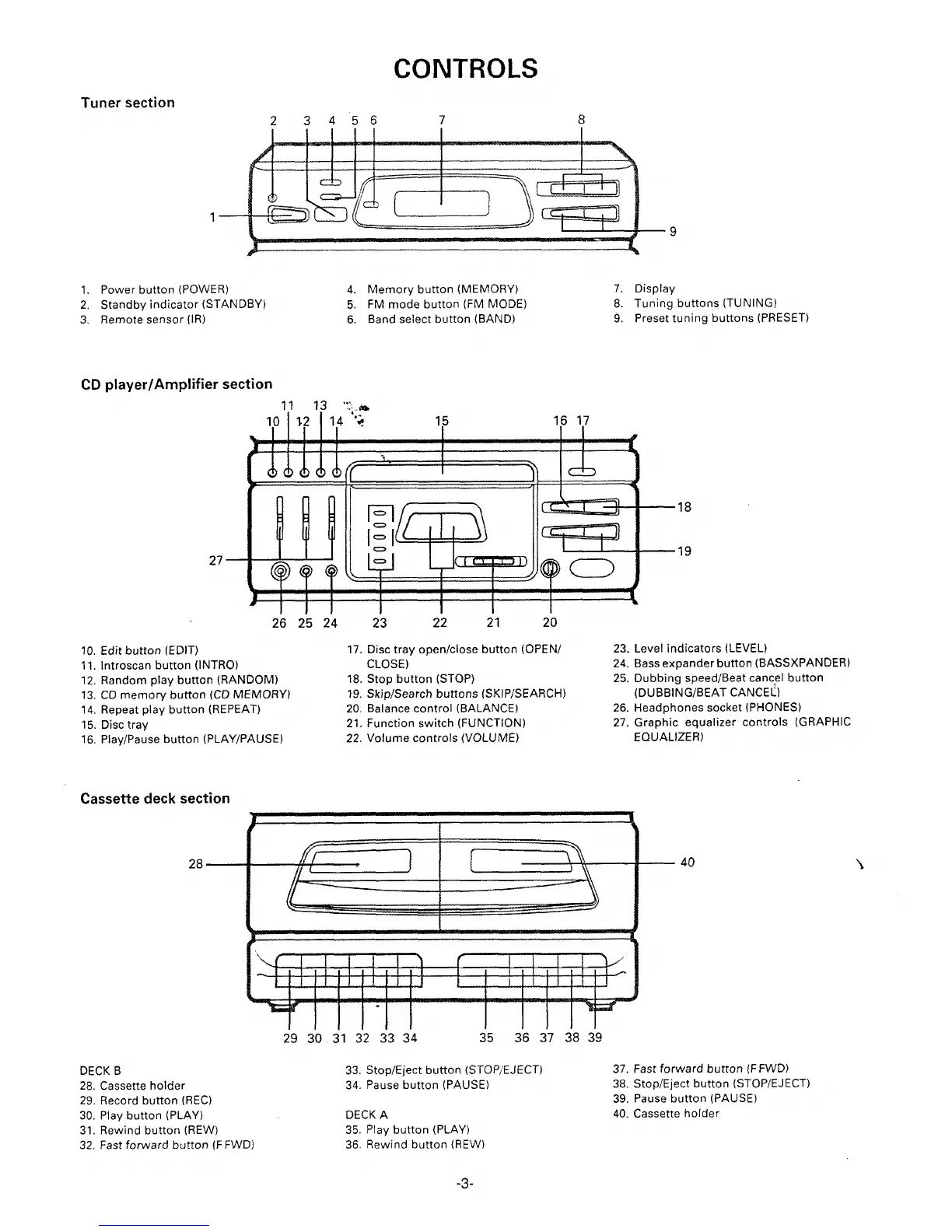 Function switch (FUNCTION) 27. Graphic equalizer controls (GRAPHIC