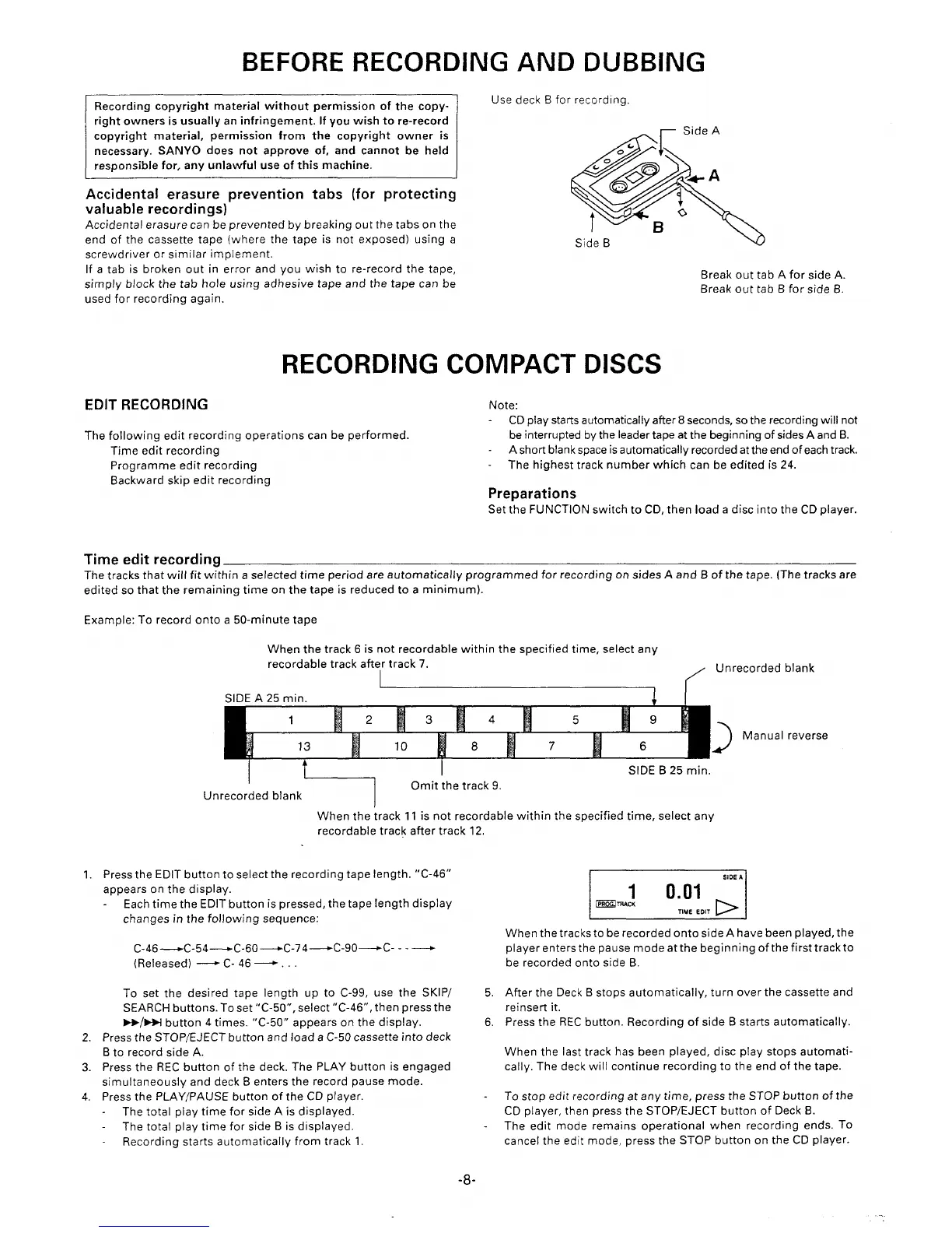 The tracks that will fit within a selected time period are automatically programmed for recording on sides A and B of the tape. (The tracks are