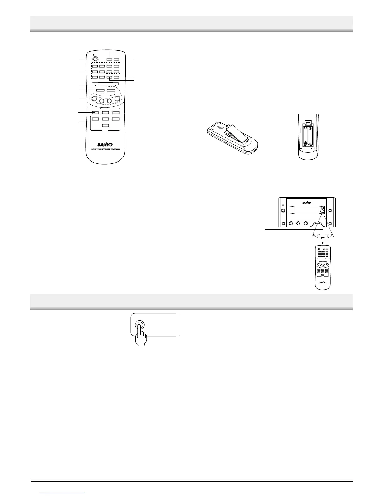 If the function is “TUNER”, the buttons select preset radio stations.