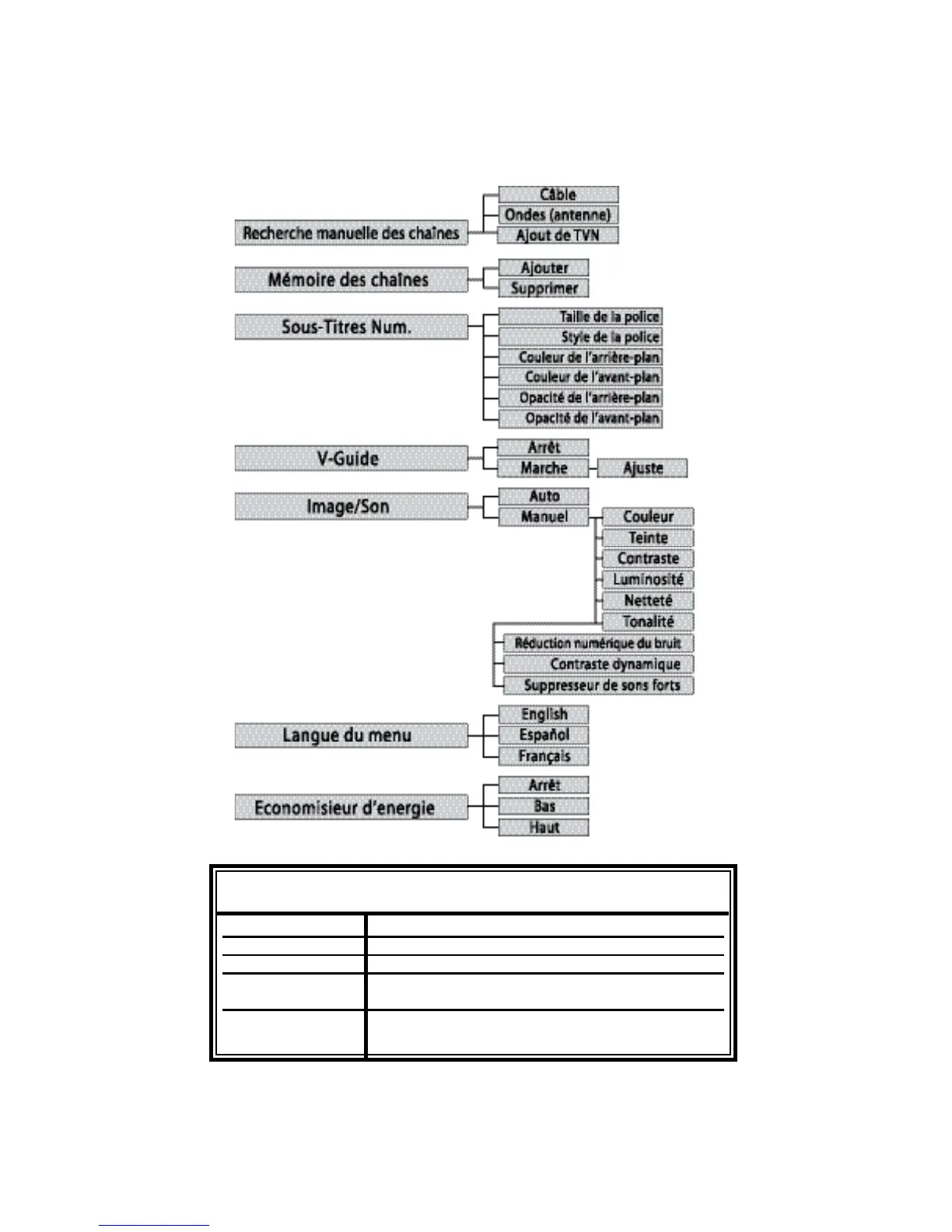 MODE SYNTONISEUR OPTIONS TV INDISPONIBLES
