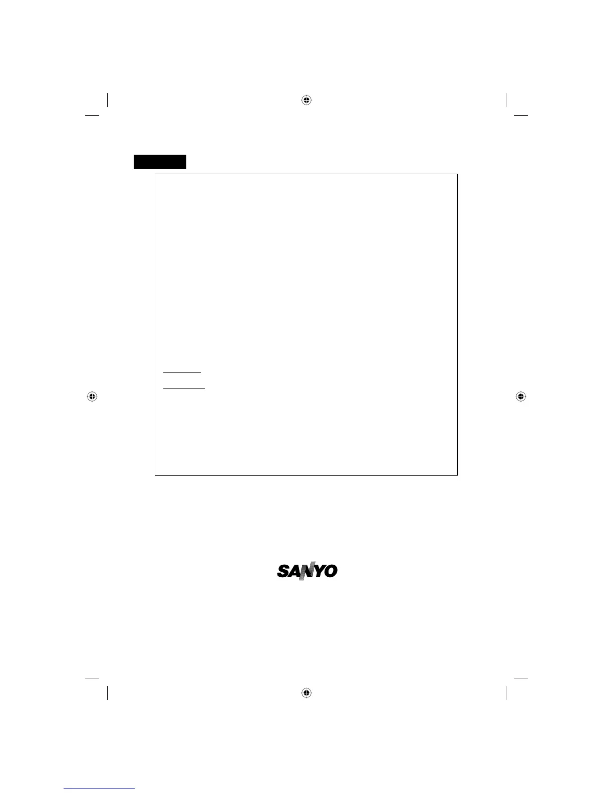 first 90 days under this warranty for any manufacturing defect or malfunction Sanyo