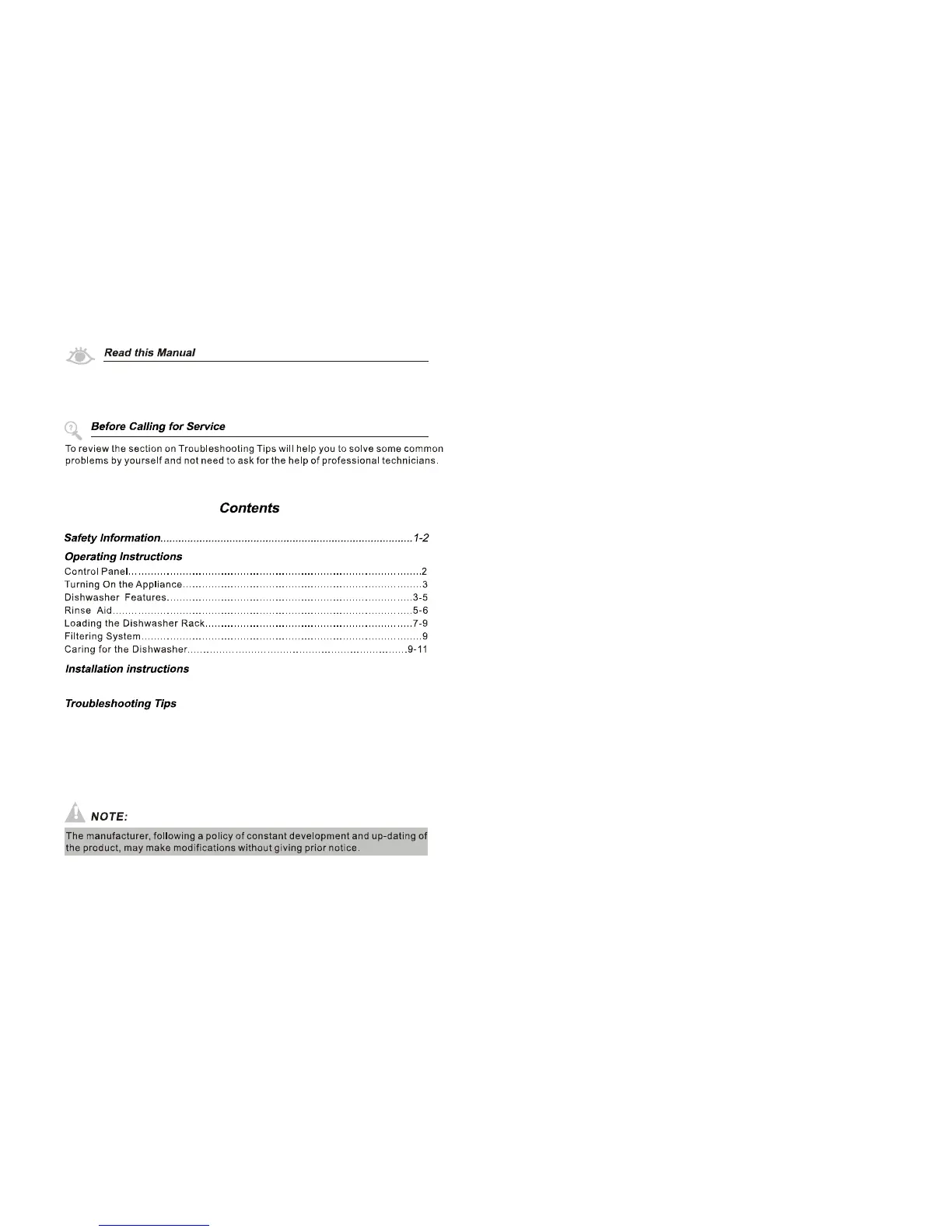 before using the dishwasher will help you to use and maintain the dishwasher