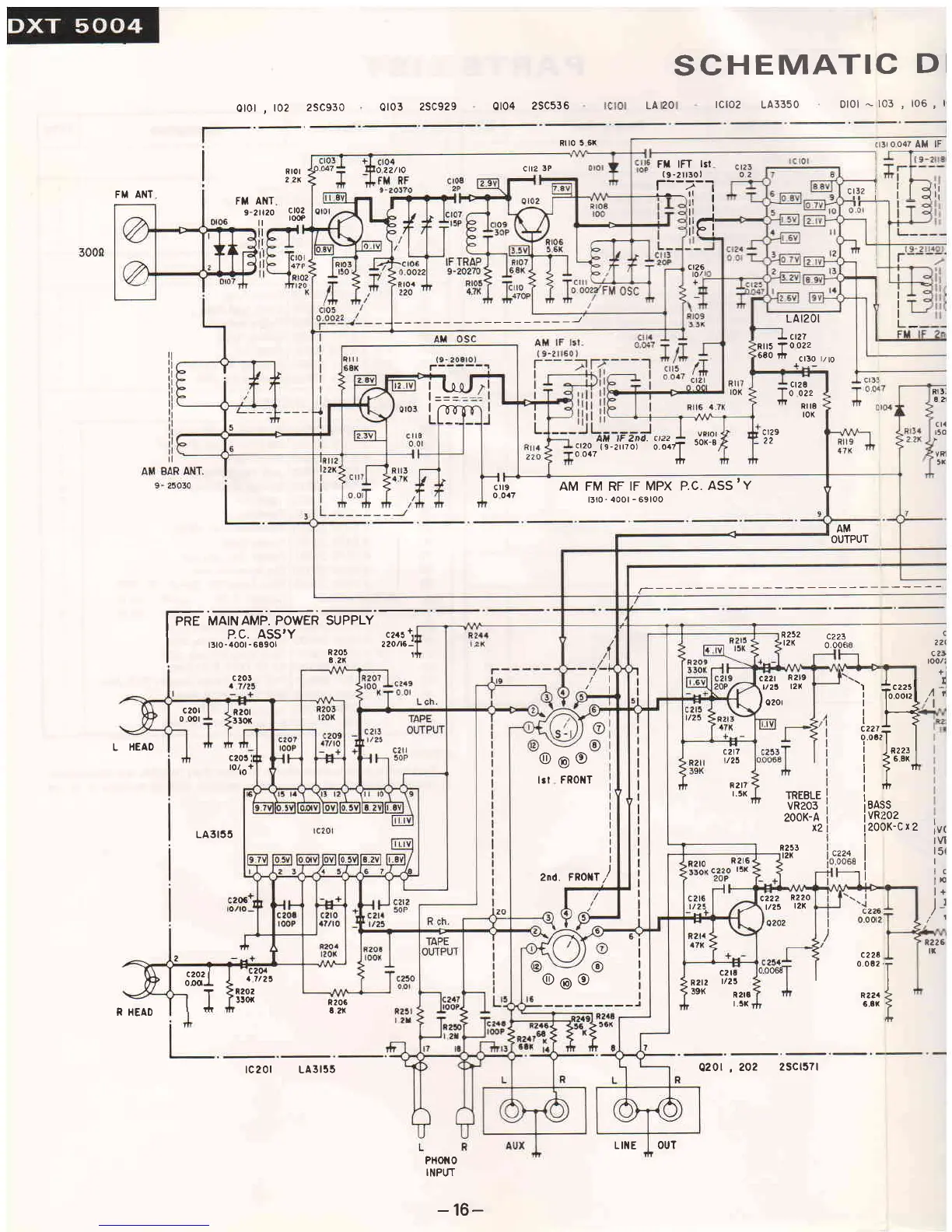 Sanyo DXT 5004 - Schematic Diagram; Pre Main Amp Power Supply Section; AM FM RF IF MPX P.C. Assy Section