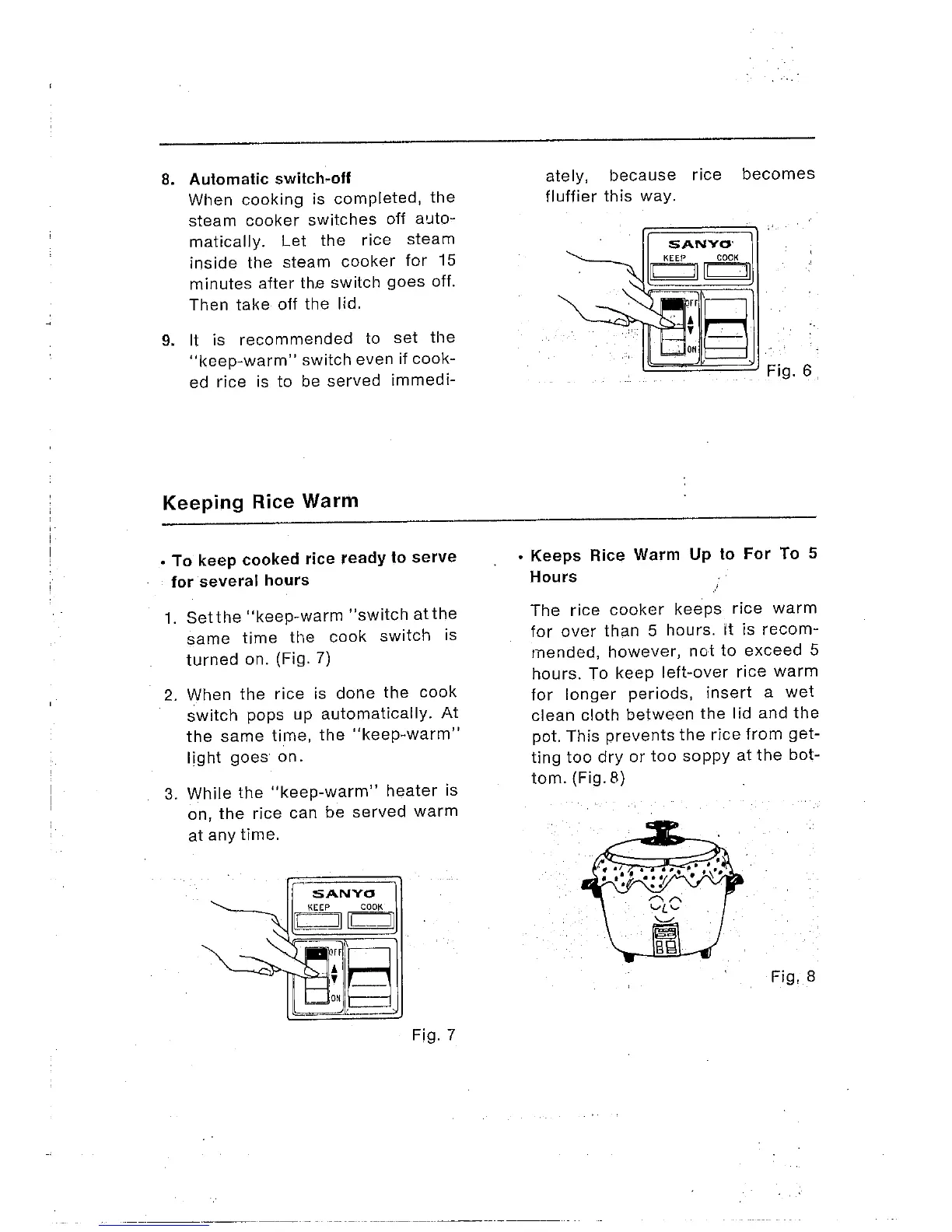 Sanyo EC 23 - Keeping Rice Warm; To keep cooked rice ready to serve for several hours; Keeps Rice Warm Up to 5 Hours