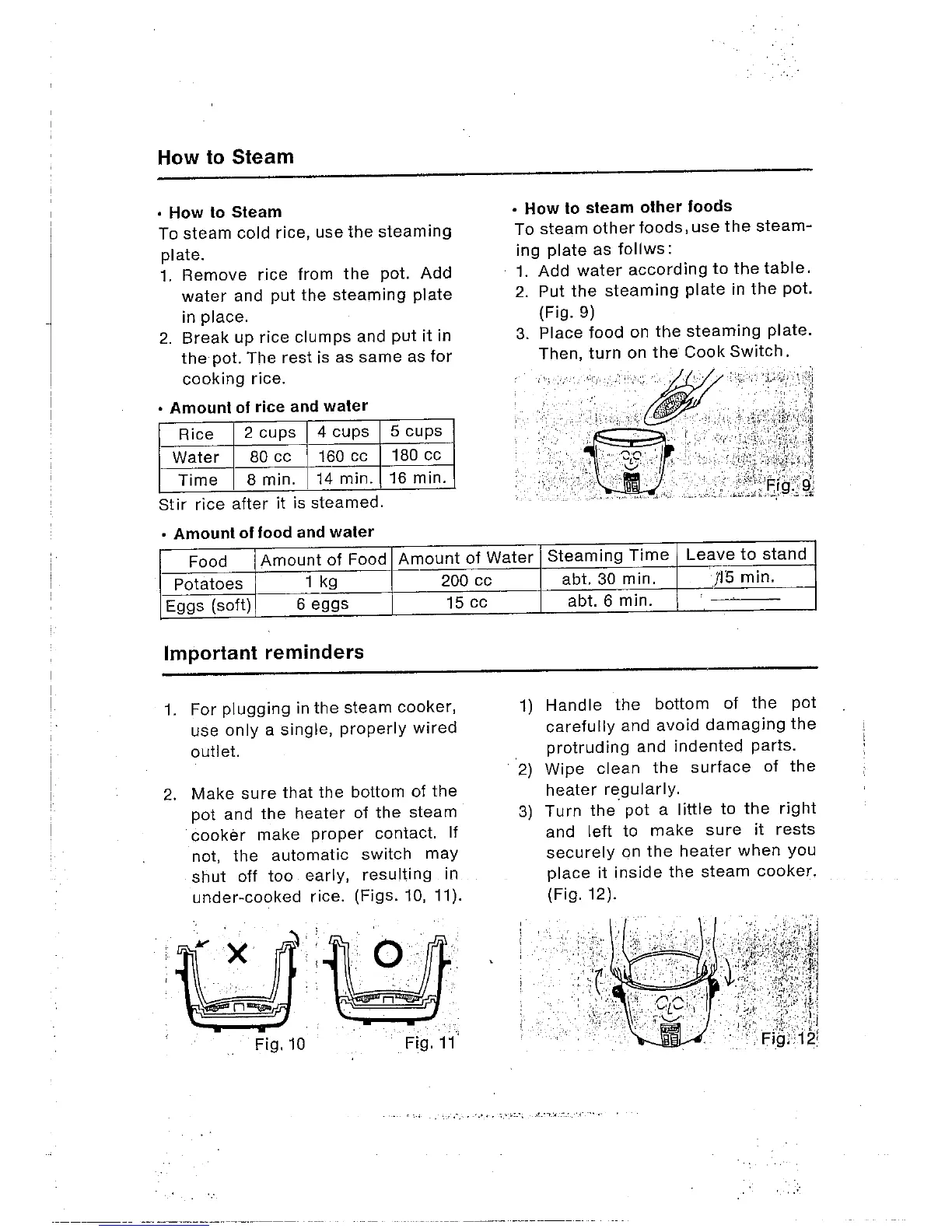 Sanyo EC 23 - How to Steam; How to Steam Cold Rice; How to Steam Other Foods; Important Reminders