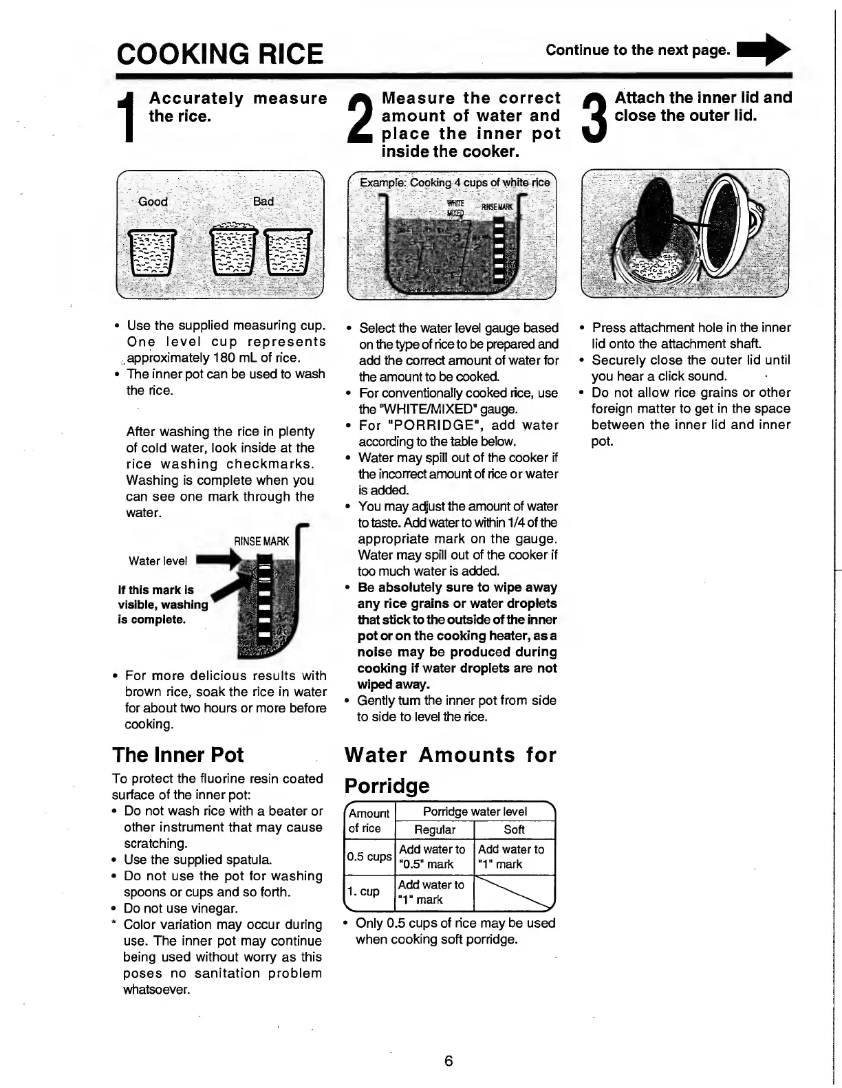 Sanyo ECJ-AC4E - Cooking Rice; Rice Measurement and Water Levels; Inner Pot Care and Usage
