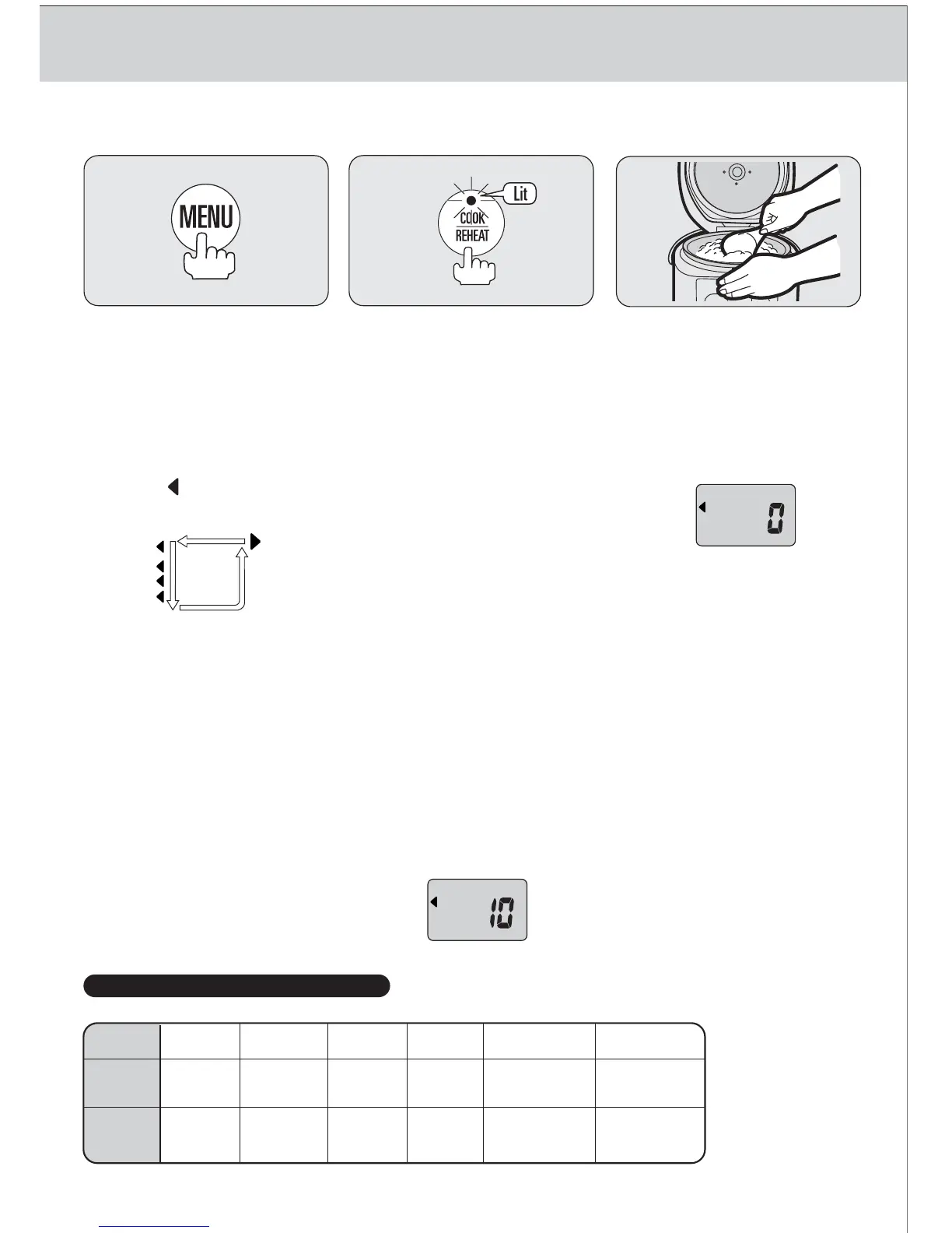 •Do not press COOK/REHEAT