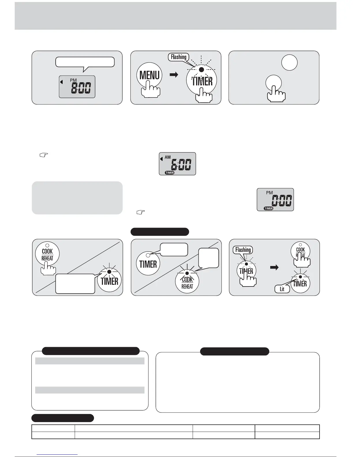 Timer must be set for the minimum times listed below. Otherwise, cooking will start immediately.