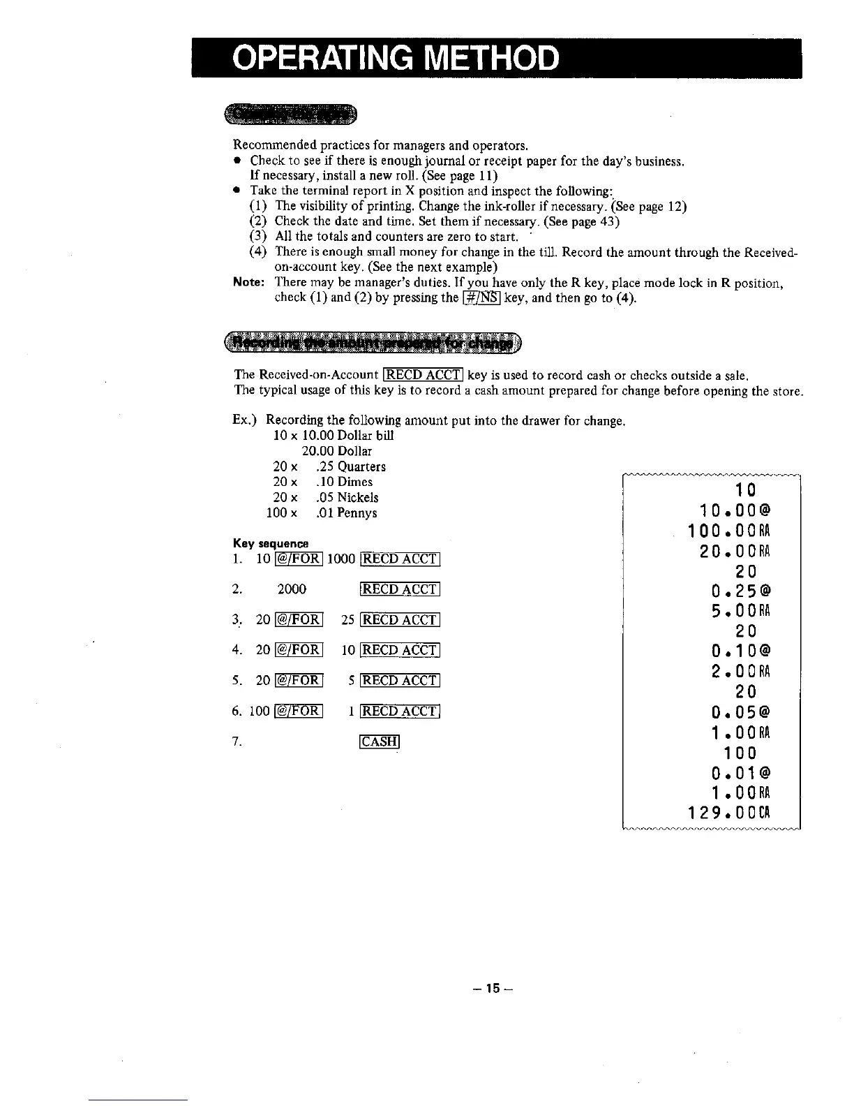 Sanyo ECR365 - Operating Method