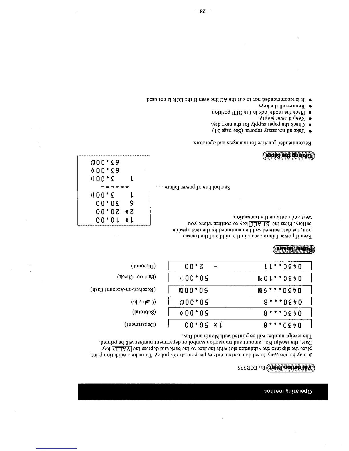 Sanyo ECR365 - Validation Print; Closing the Store