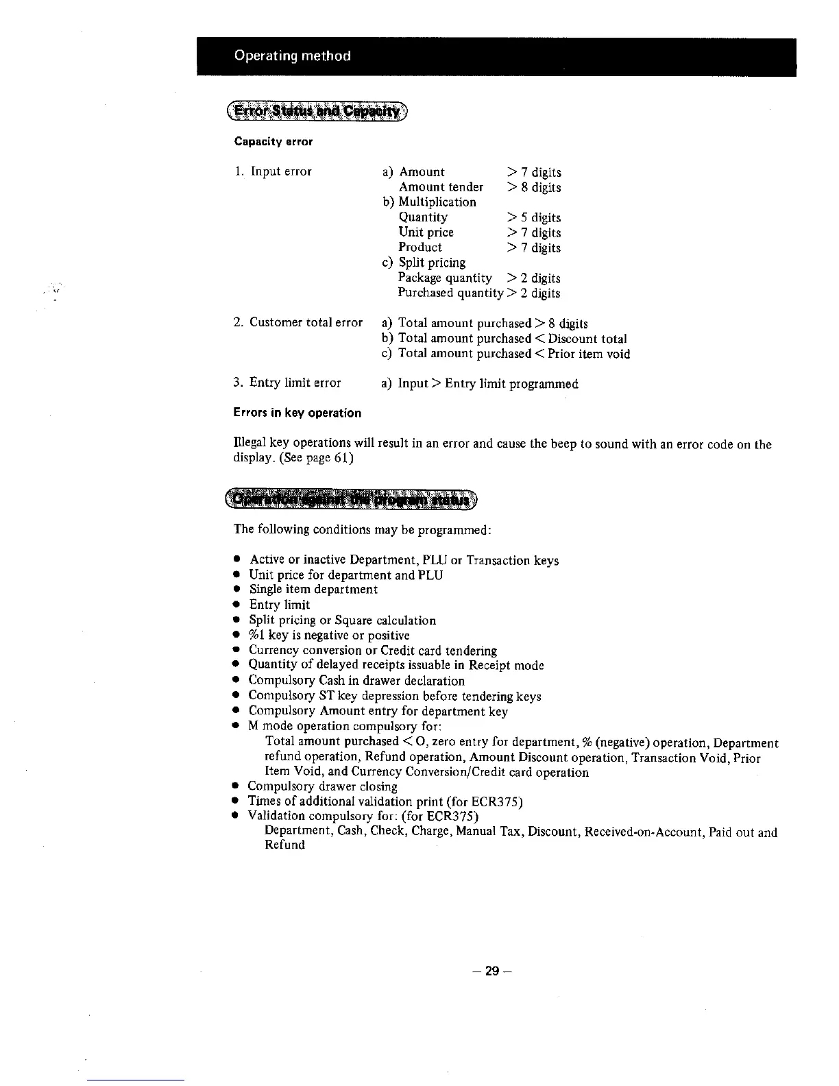 Sanyo ECR365 - Error Status and Capacity; Operation against the Program Status