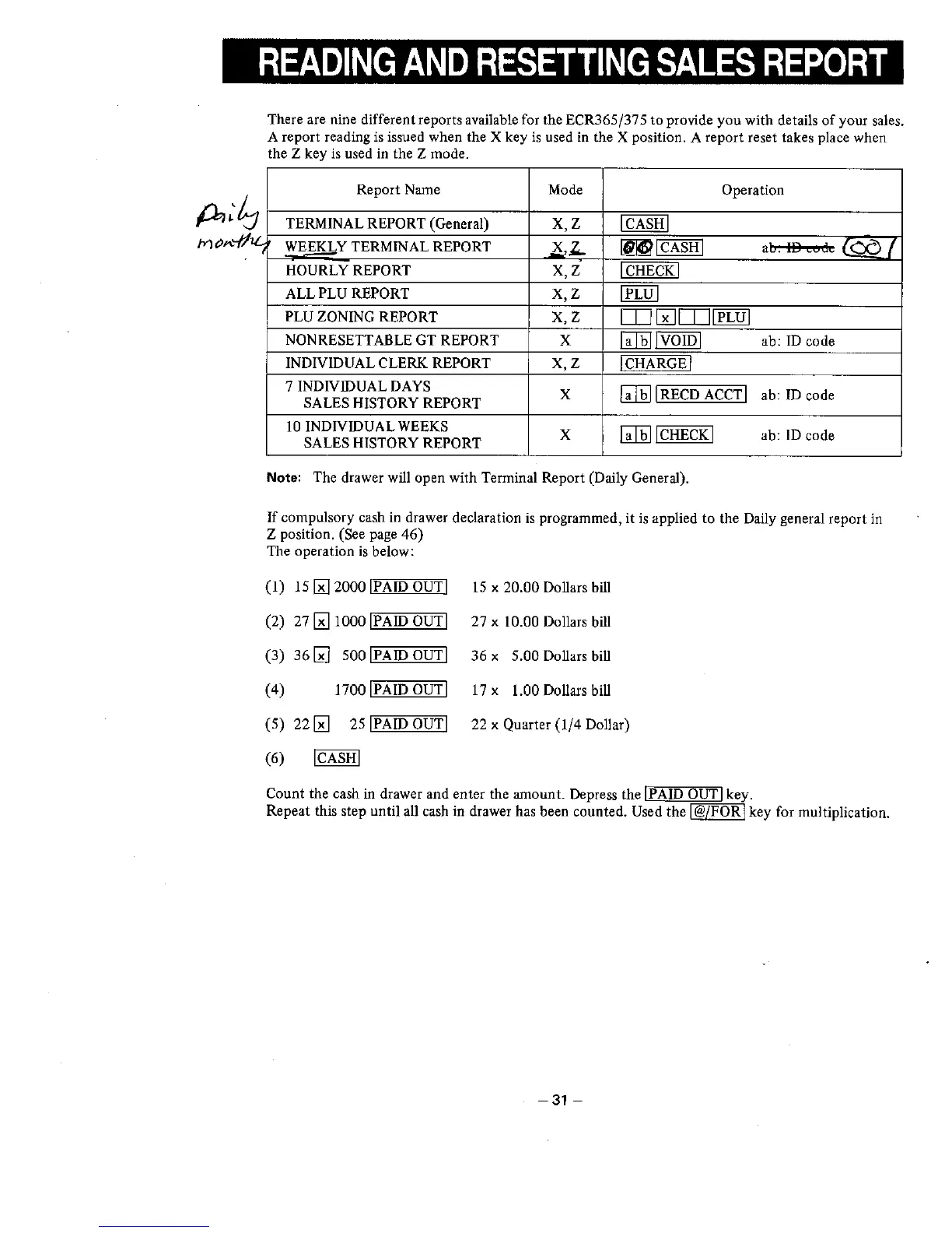Sanyo ECR365 - Reading and Resetting Sales Report