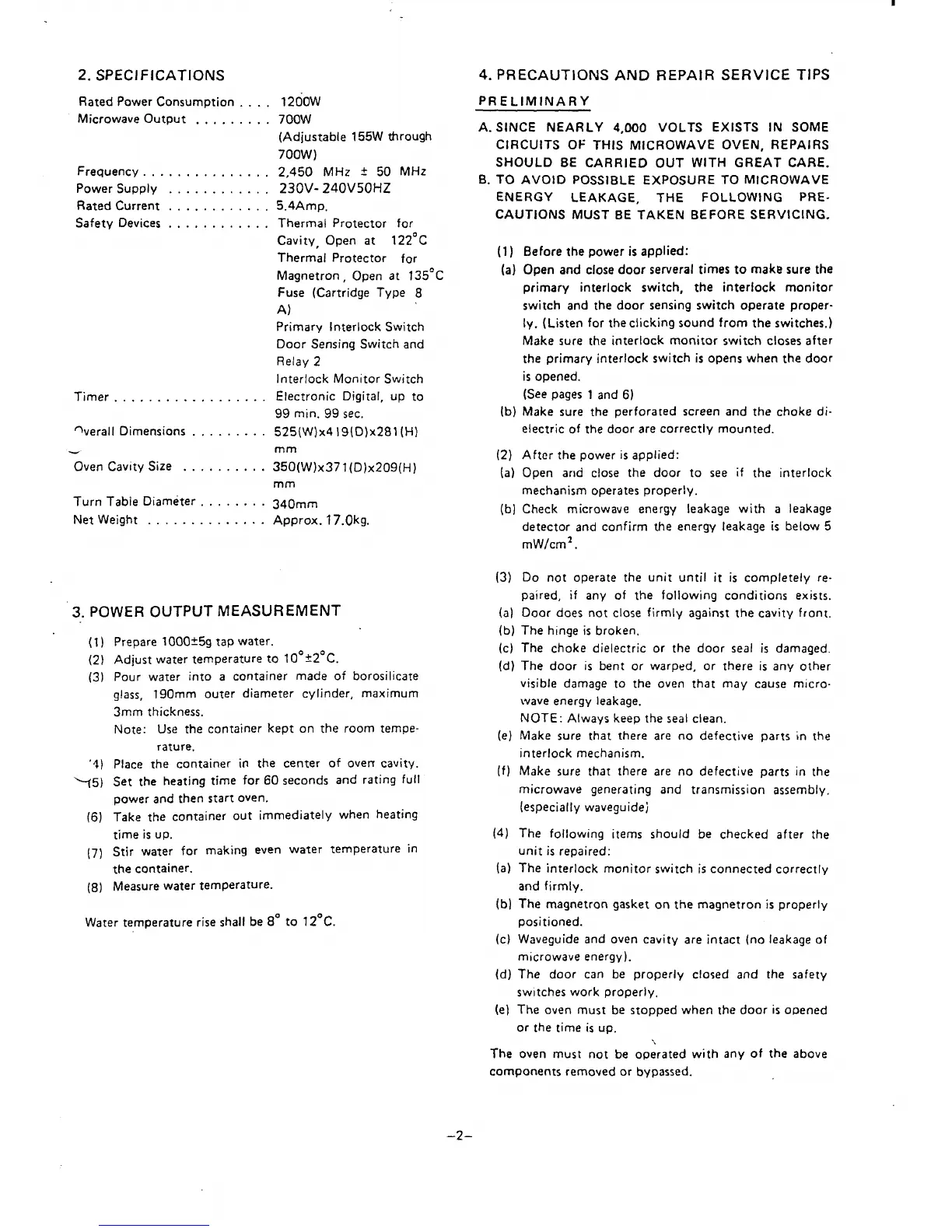 2. SPECIFICATIONS