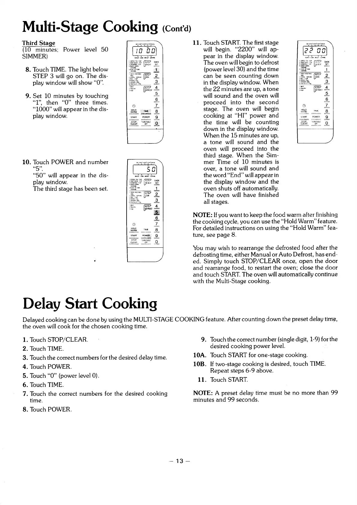 Delayed cooking can be done by using the MULTI-STAGE COOKING feature. After counting down the preset delay timy,