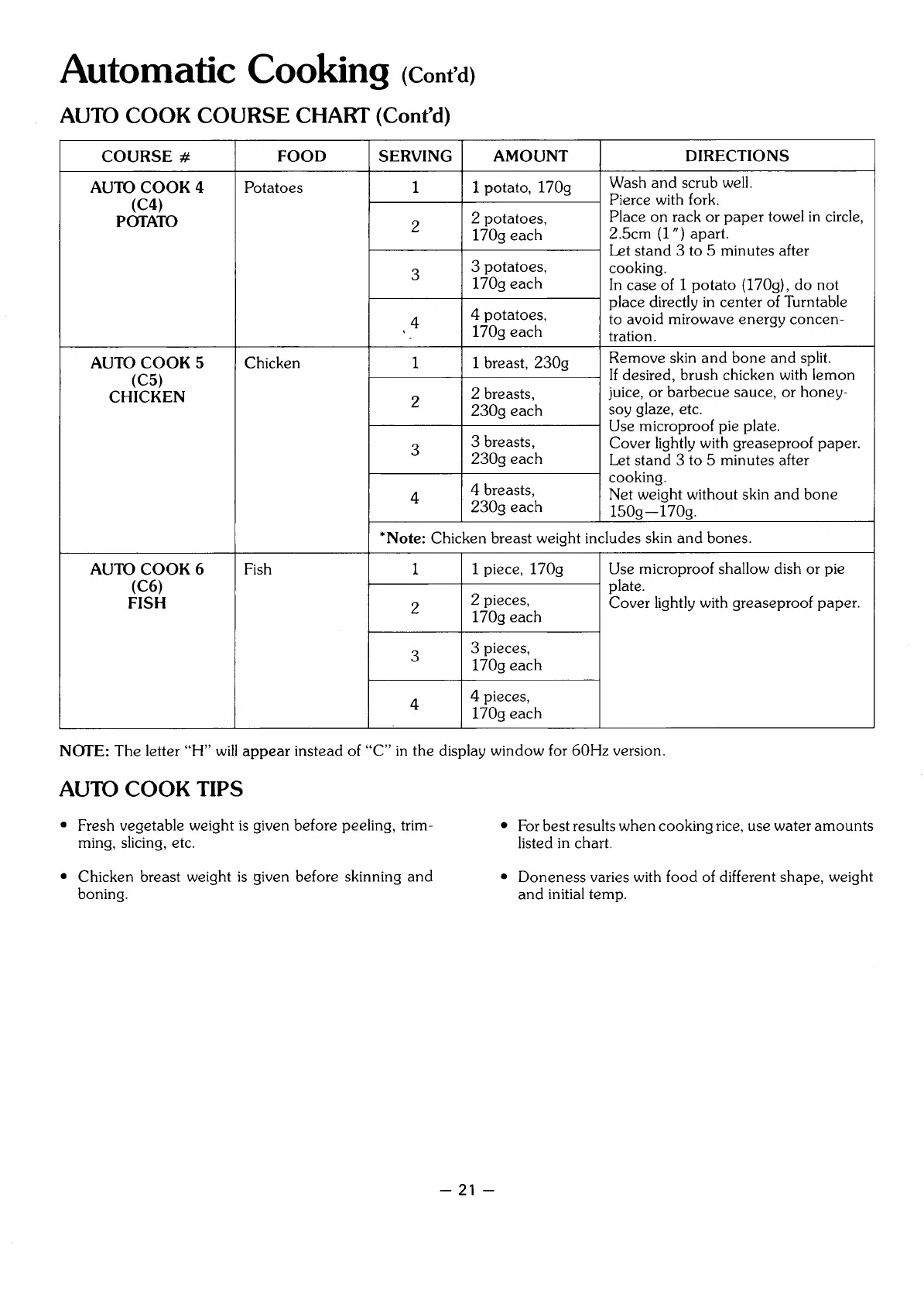 NOTE: The letter “H” will appear instead of “C” in the display window for 60Hz version.