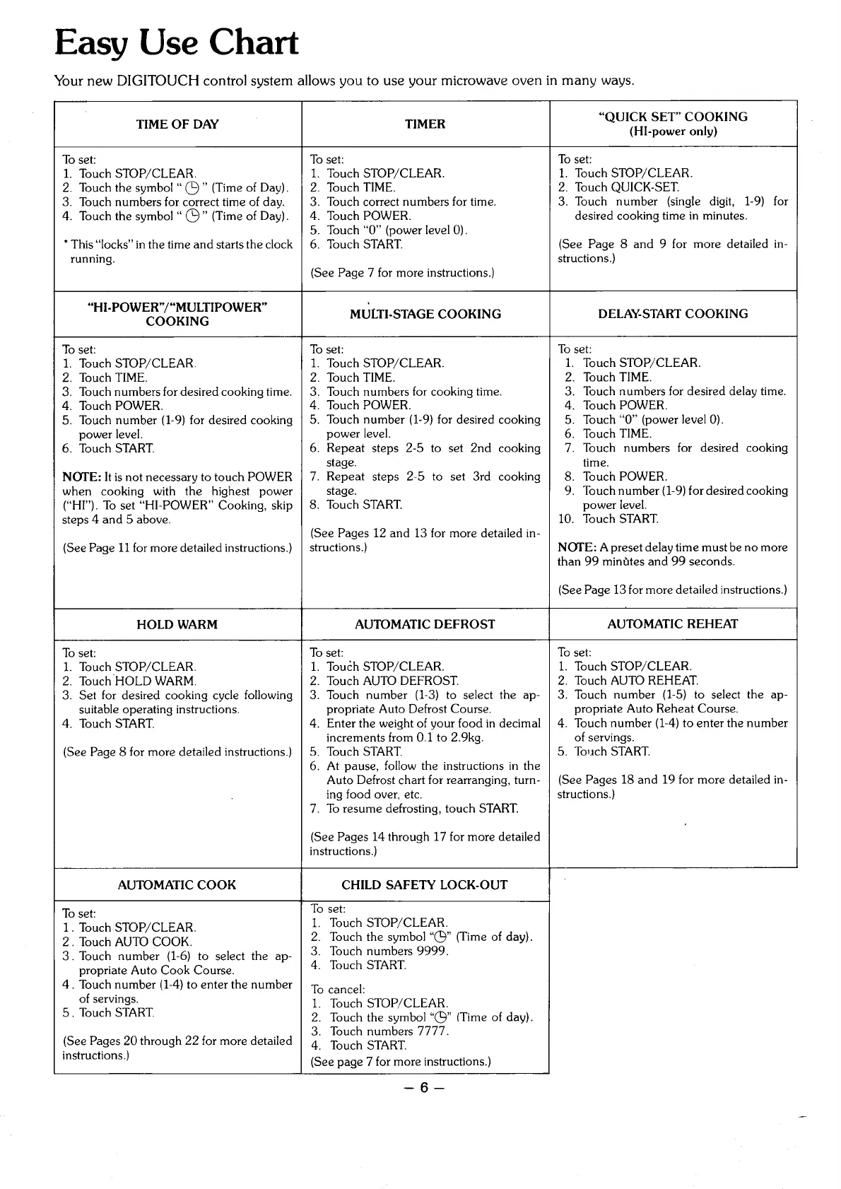 Your new DIGITOUCH control system allows you to use your microwave oven in many ways.