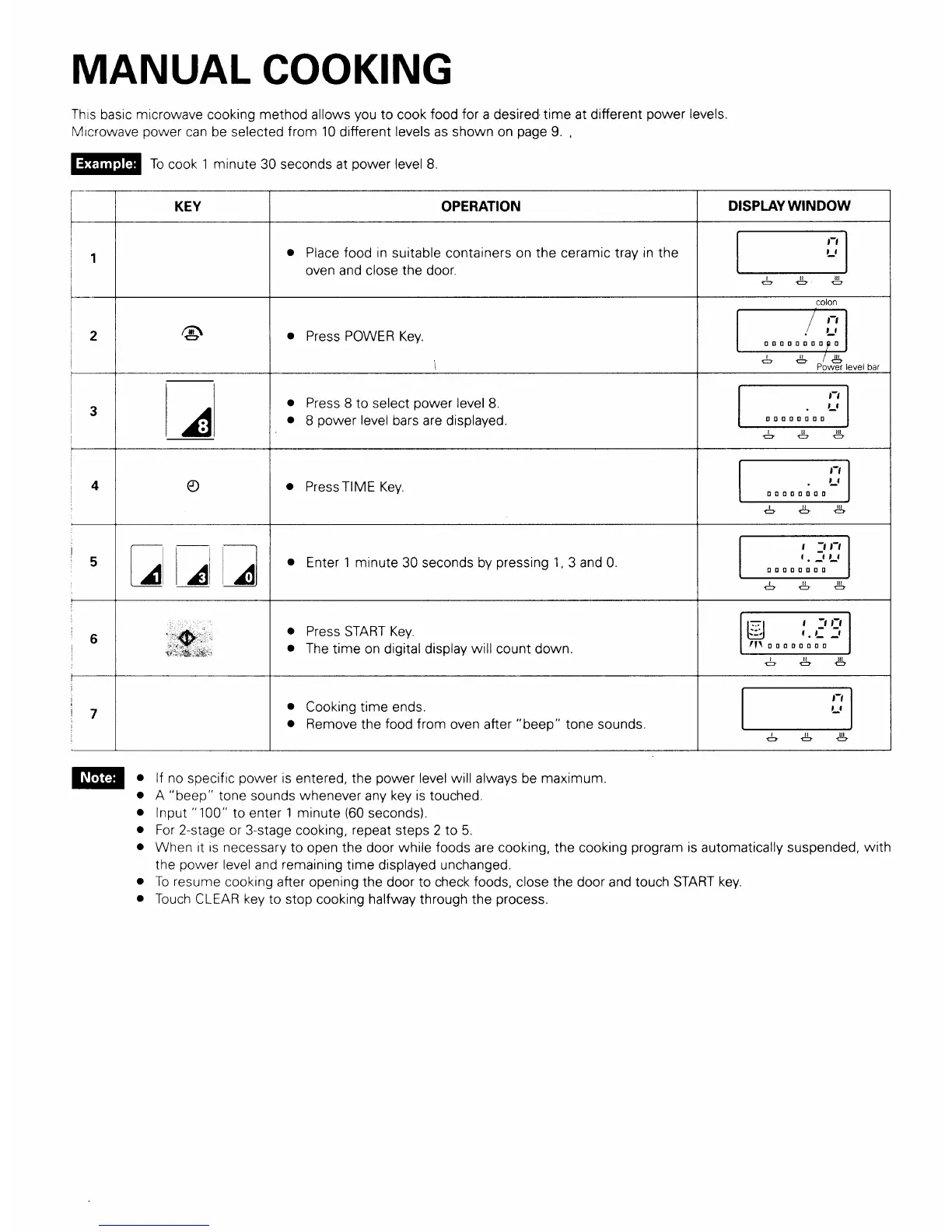 Sanyo EM-C1900 - Manual Cooking Procedure; Manual Cooking Overview; Step-by-Step Manual Cooking; Notes on Manual Cooking