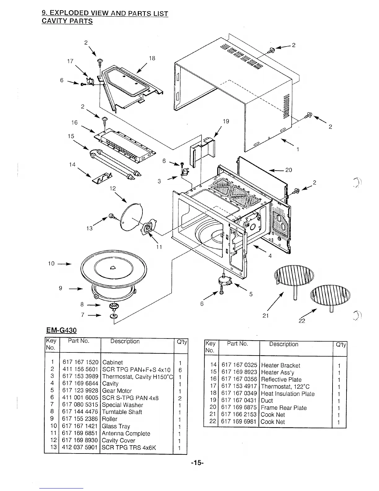 Sanyo EM-G430 - Exploded View and Parts List; Cavity Parts