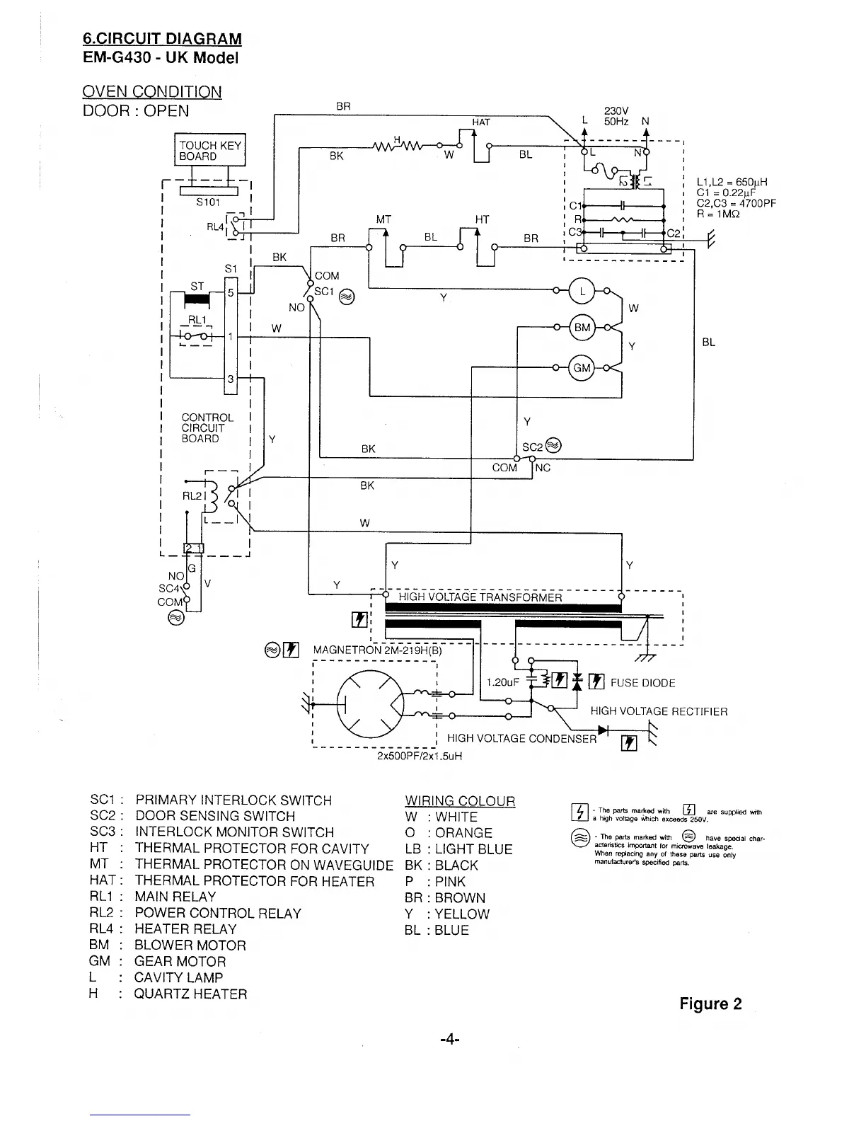 Sanyo EM-G430 - Circuit Diagram; Oven Condition; Wiring Colour