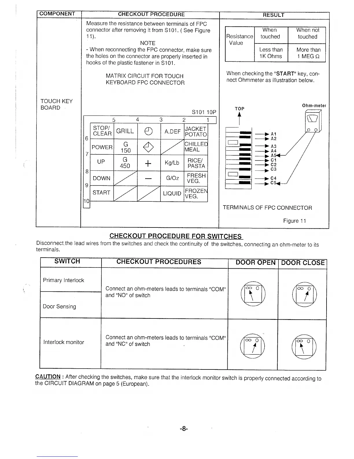 Sanyo EM-G430 - Checkout Procedure for Switches