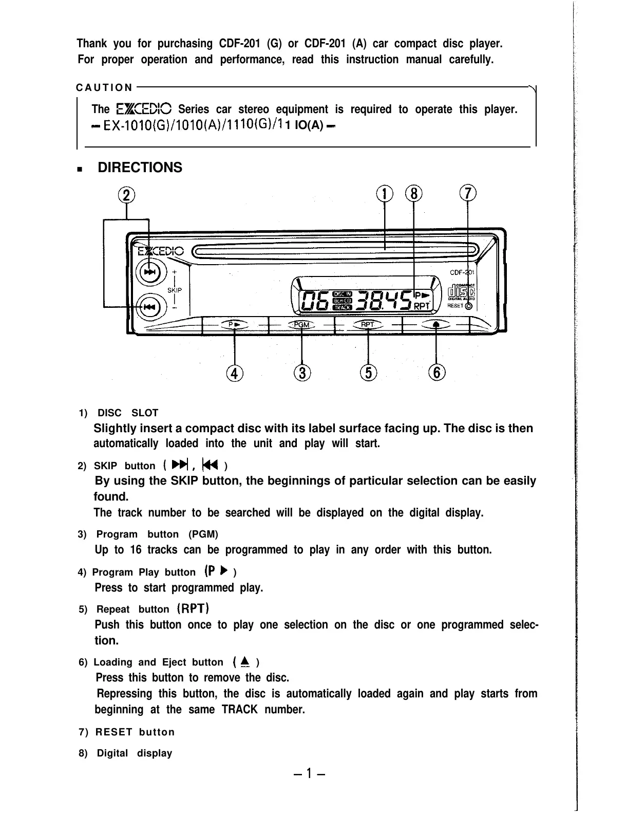 Thank you for purchasing CDF-201 (G) or CDF-201 (A) car compact disc player.