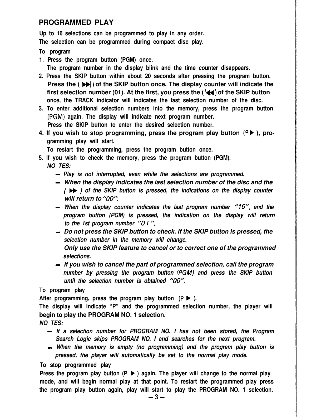 the program play button again, play will start to play the PROGRAM NO. 1 selection.