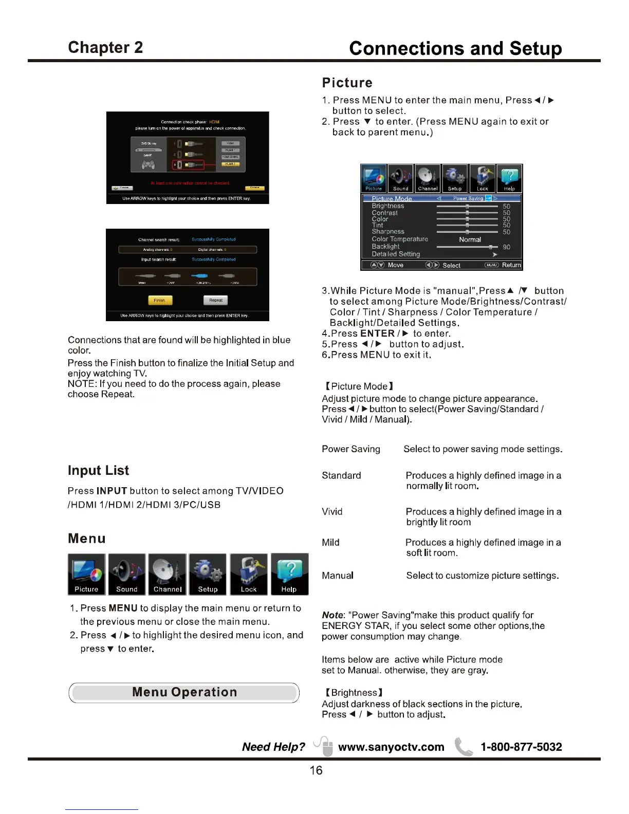 Sanyo FVD48P4 - Picture; Input List; Menu; Picture Mode