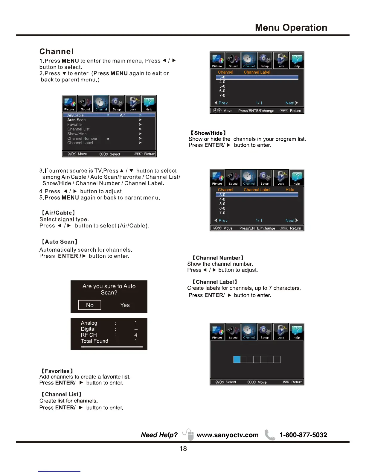 Sanyo FVD48P4 - Channel; Air;Cable; Auto Scan; Show;Hide
