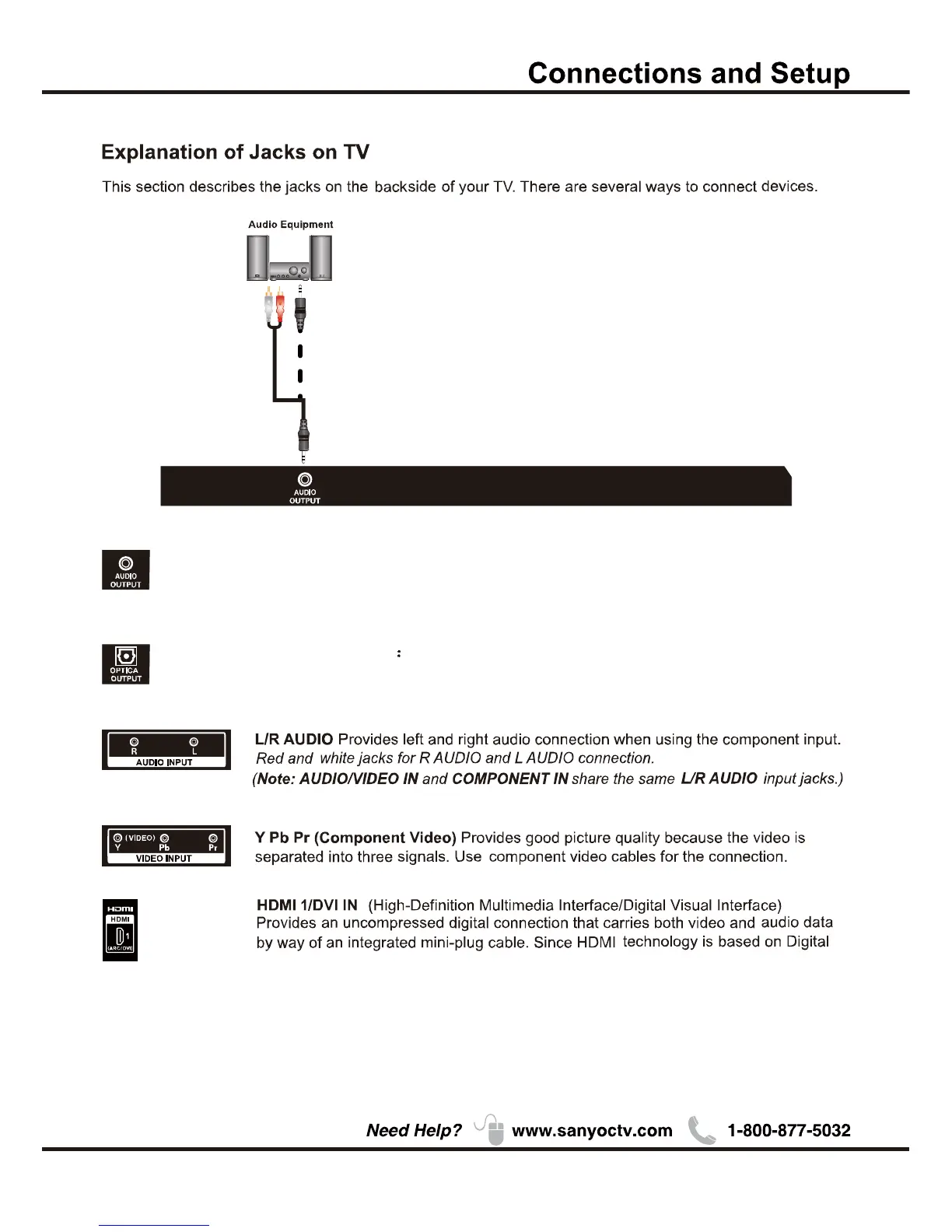 AUDIO OUTPUT the socket provides composite audio connection.