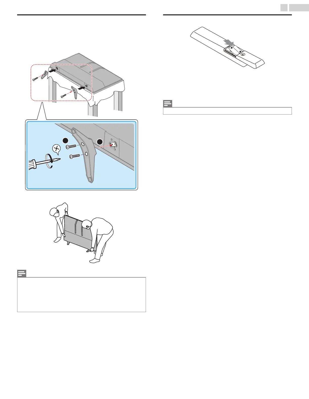large screen TVs, at least 2 people are required for these steps.