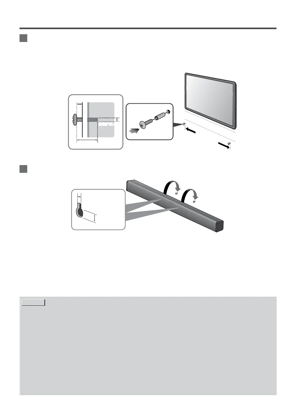 • Make sure that the wall where you are mounting the soundbar is appropriate.