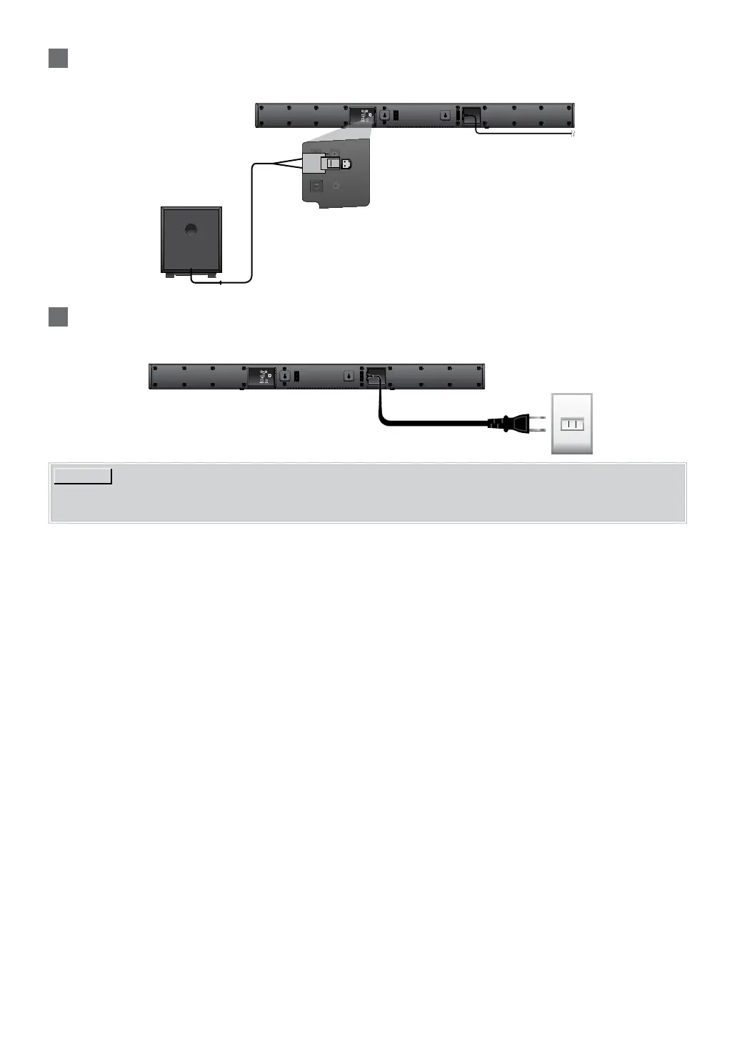 • Do not pull the subwoofer cable hard, or apply excessive force to it. Doing so may cause damage to the cable.