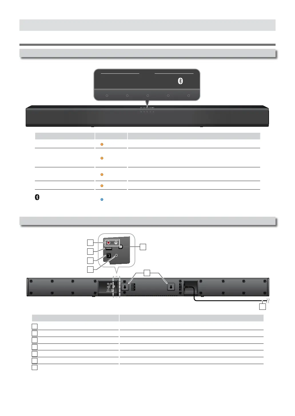 LINE INPUT orange Lights up when you switch to line-in source (3.5 mm jack).