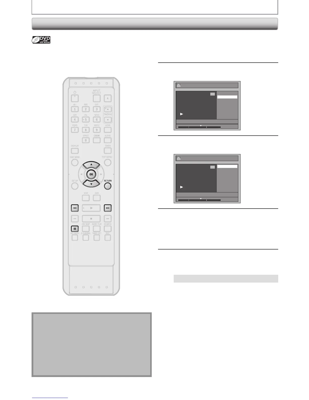 For titles in video mode DVD-RW, you can set or edit