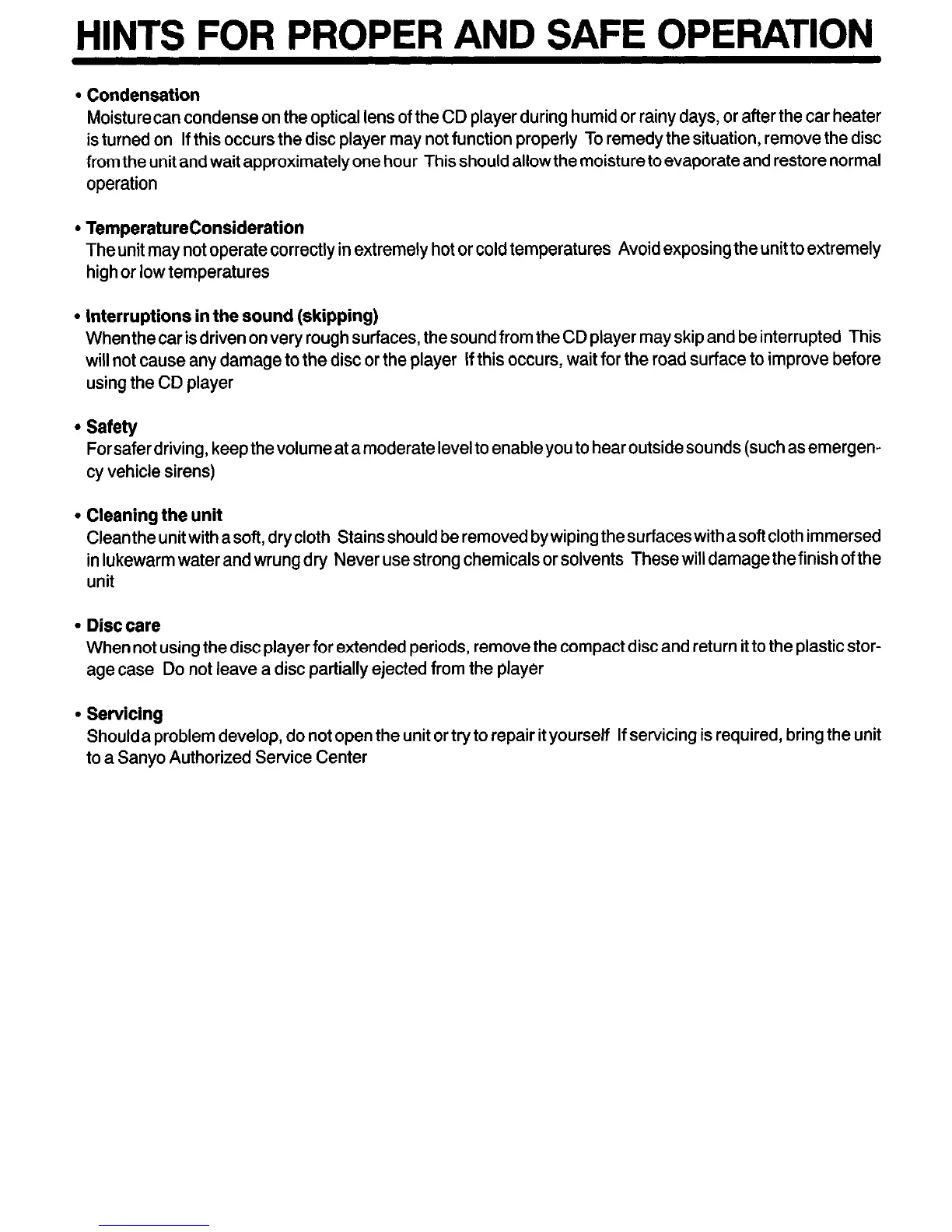 When not using the disc player for extended periods, remove the compact disc and return it to the plastic stor-