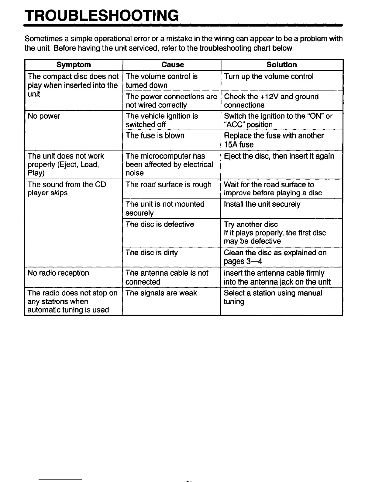 the unit Before having the unit serviced, refer to the troubleshooting chart below