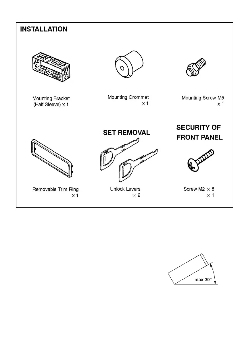 vehicle, make sure the unit does not tilt by more than 30°.