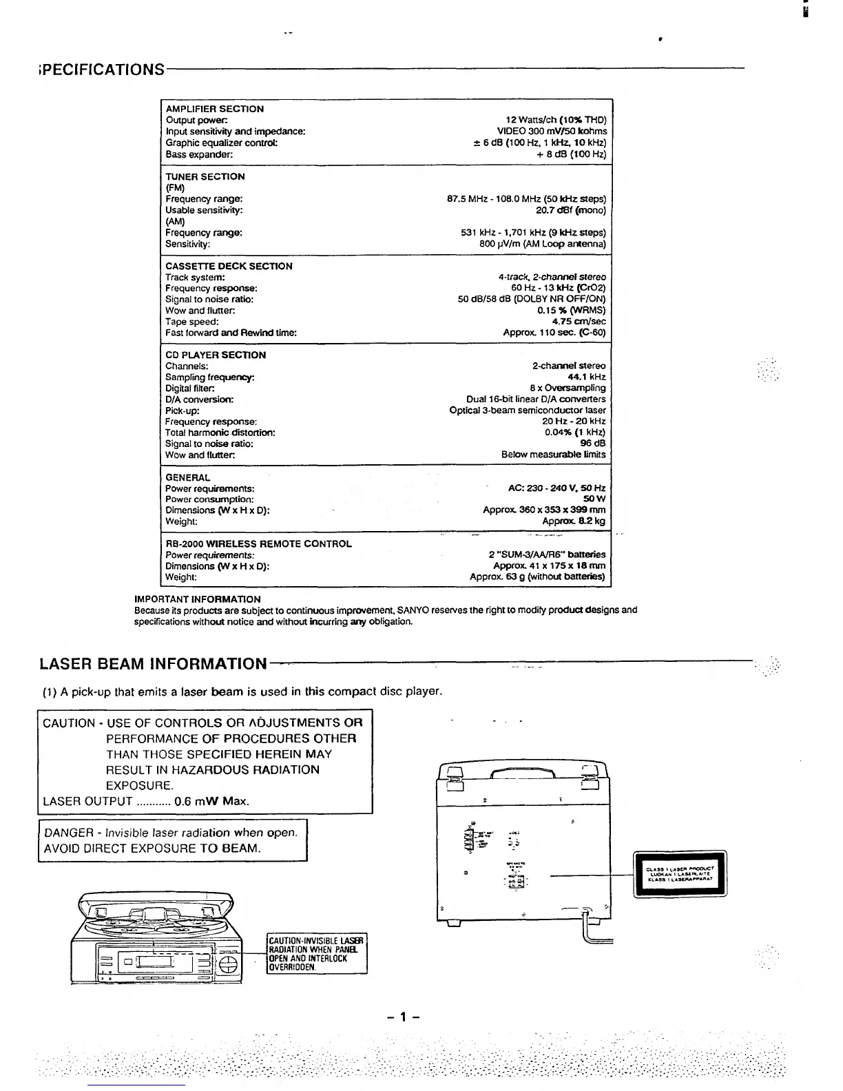 (1) A pick-up that emits a laser beam is used in this compact disc player.
