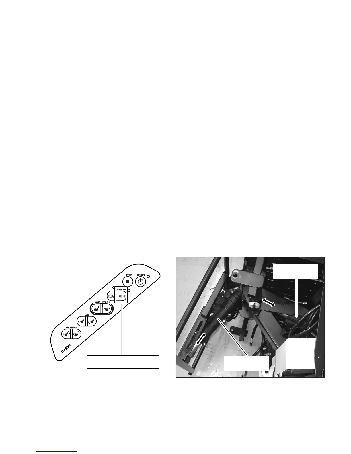 RECLINING "DOWN" and LEG "DOWN" buttons on the control.