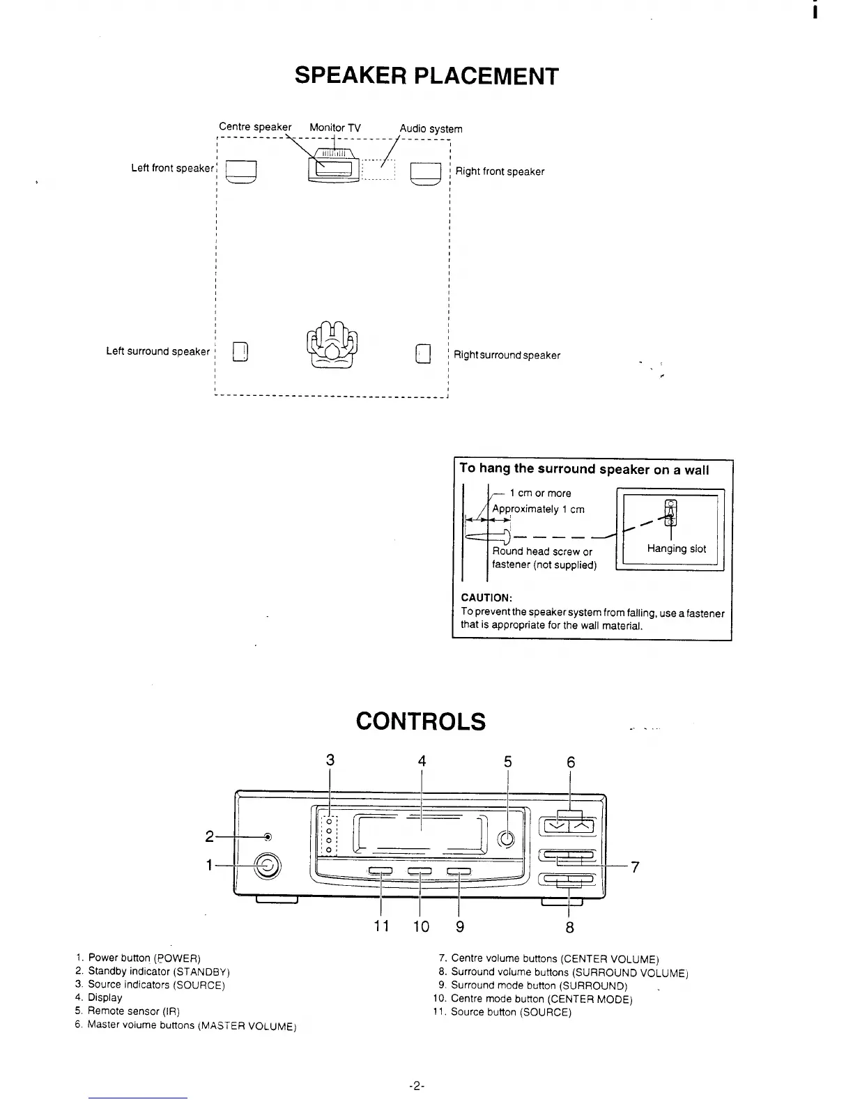 7. Centre volume buttons (CENTER VOLUME)