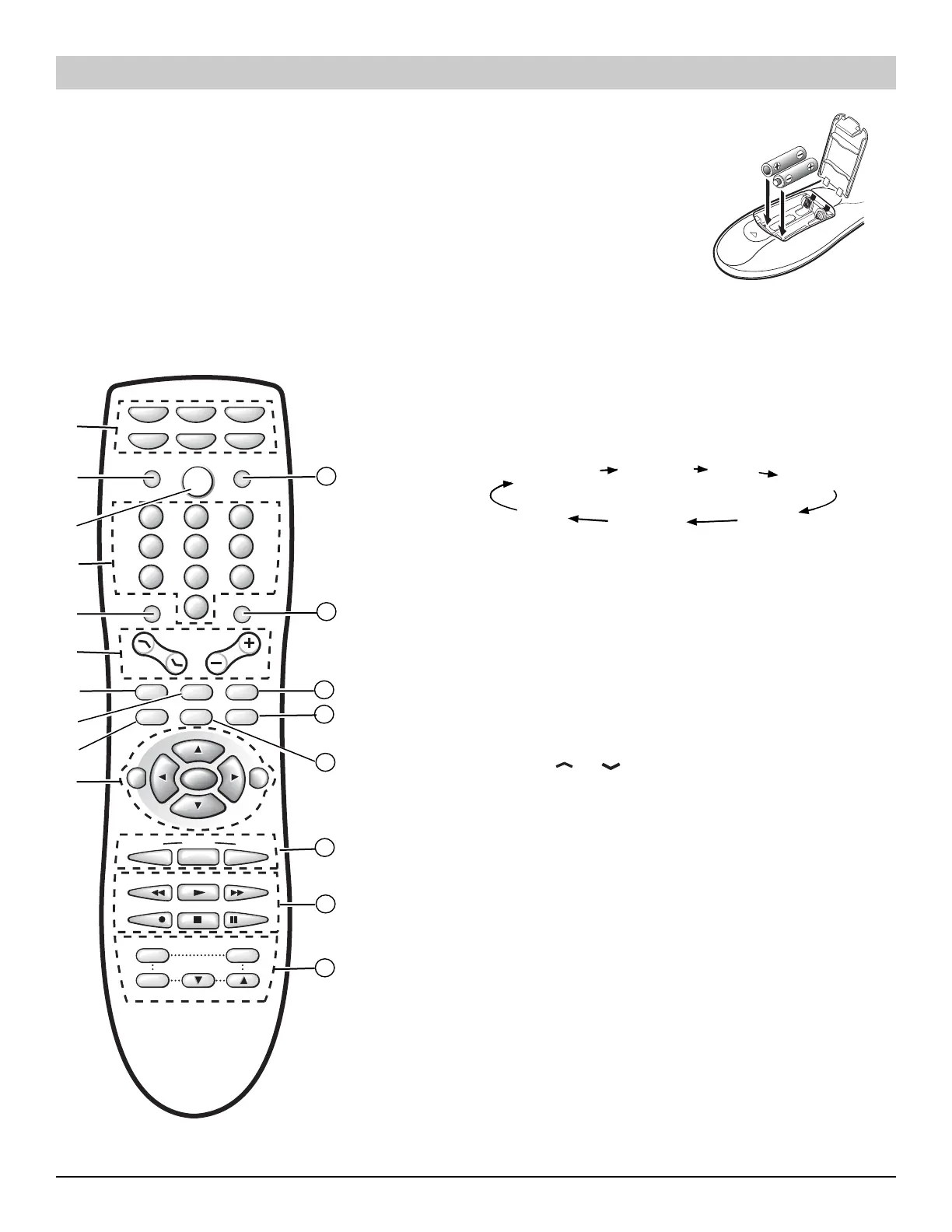 Teclas de MODE—Use estas teclas para programar el control remoto y seleccio-