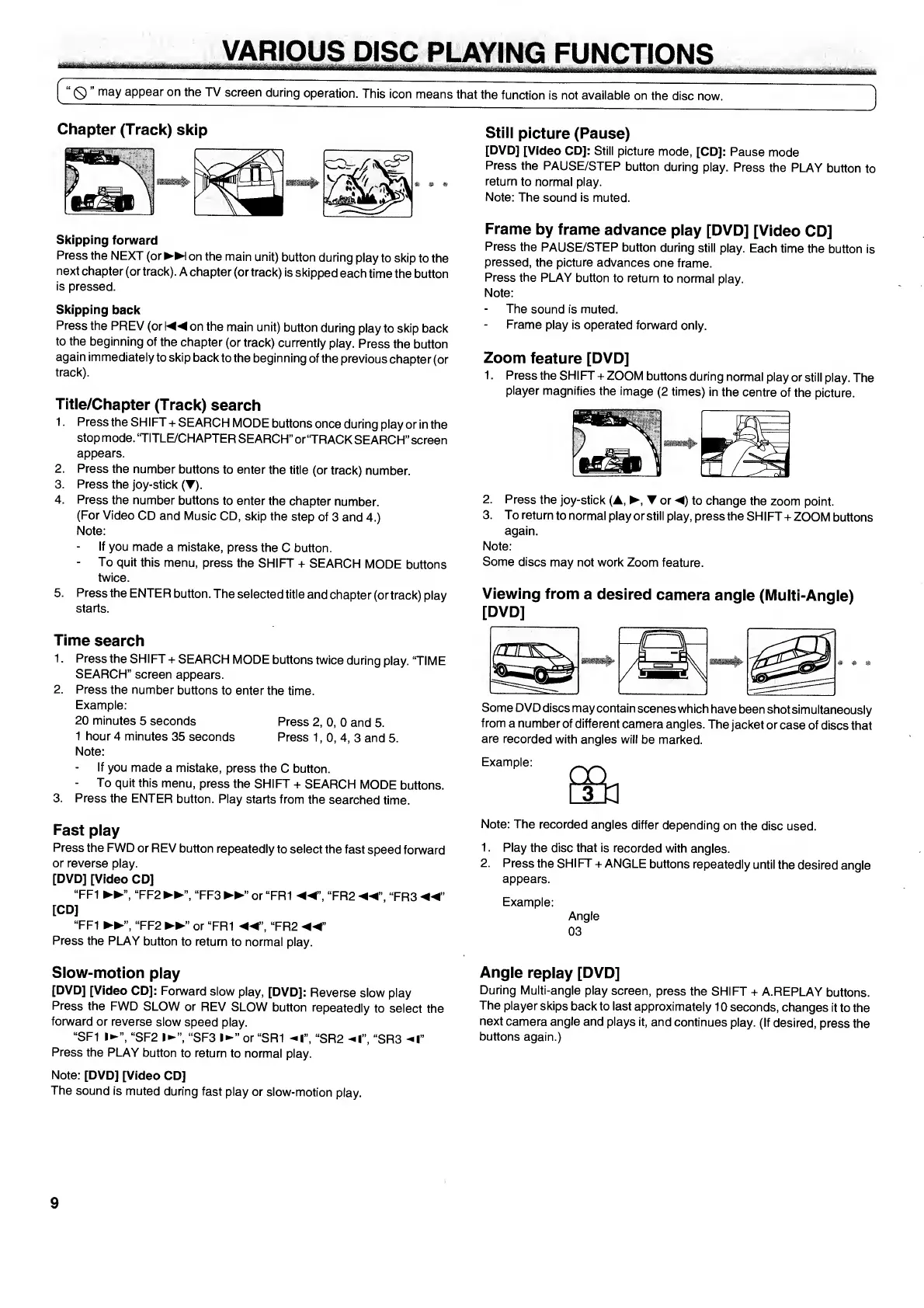 Sanyo HTD-5201 - VARIOUS DISC PLAYING FUNCTIONS; Chapter (Track) Skip; Skipping Forward and Back; Title;Chapter (Track) Search