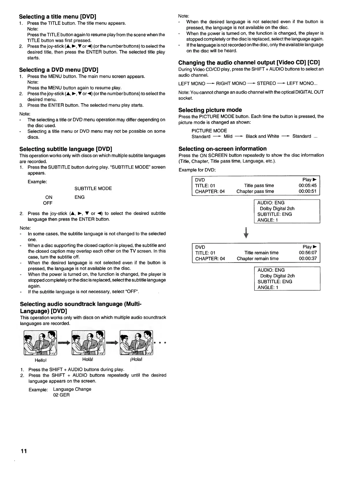 Sanyo HTD-5201 - SELECTING MENUS AND MODES; Selecting a Title Menu [DVD]; Selecting a DVD Menu [DVD]; Selecting Subtitle Language [DVD]