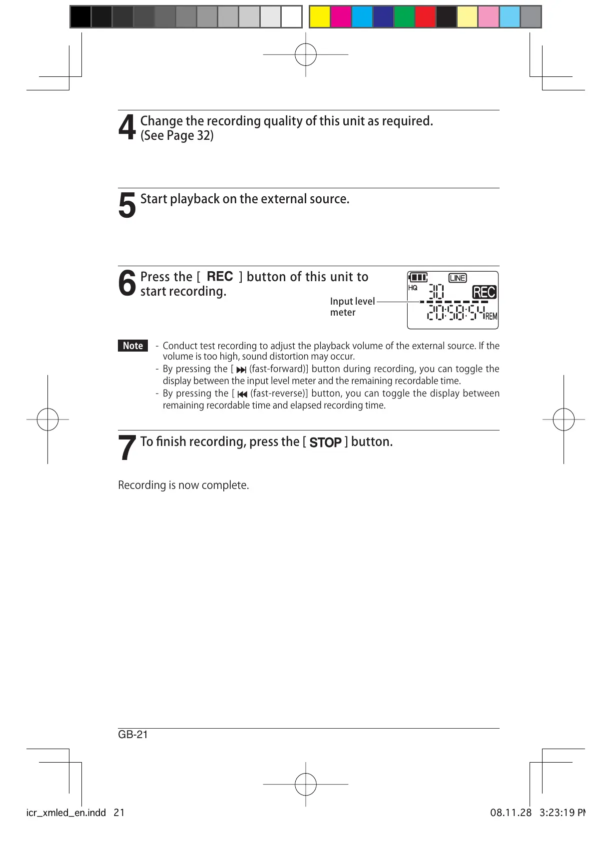 Note - Conducttestrecordingtoadjusttheplaybackvolumeoftheexternalsource.Ifthe