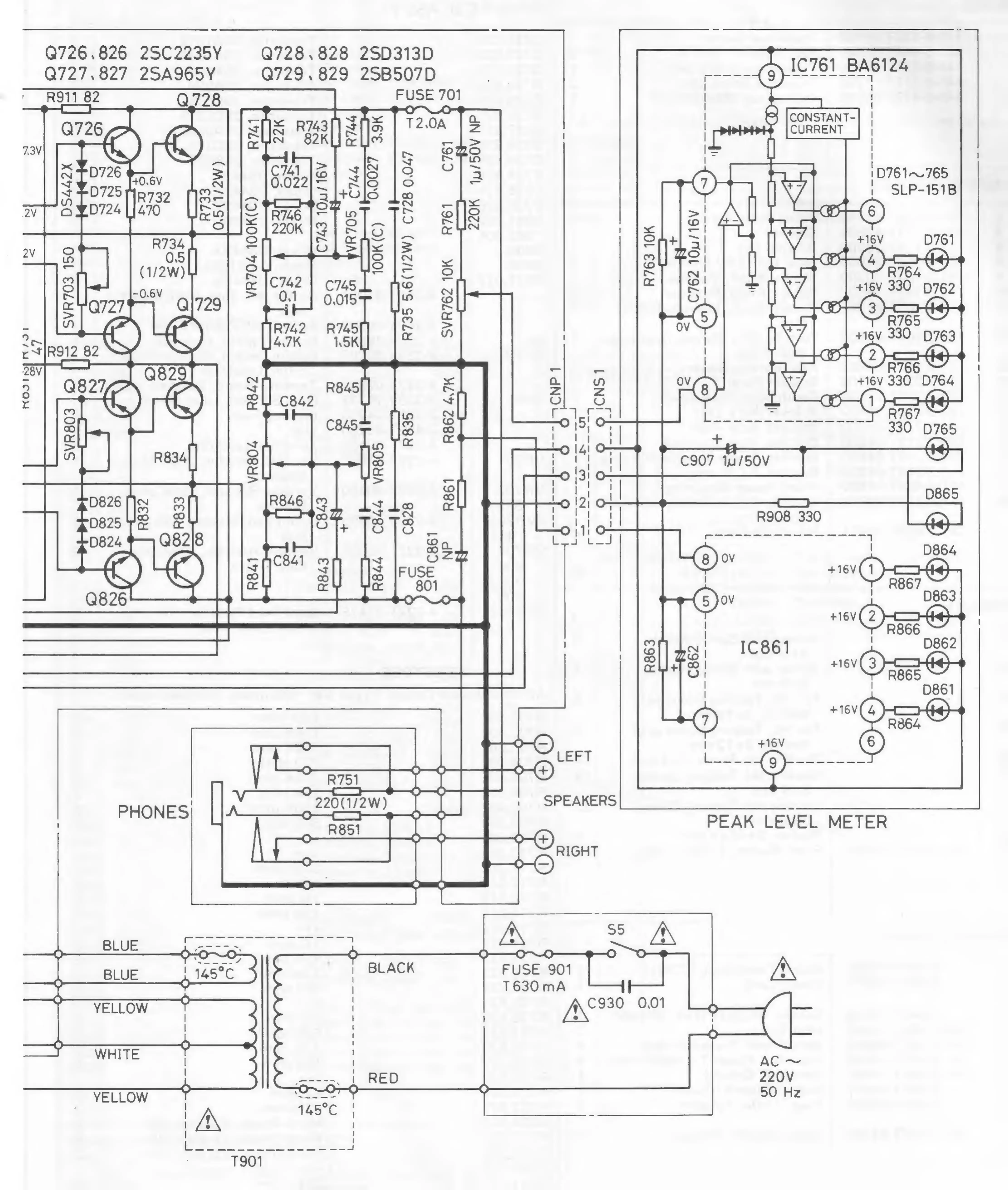 Sanyo JA20 - Circuit Diagrams and Connections; Peak Level Meter Circuitry; Power Supply and AC Input