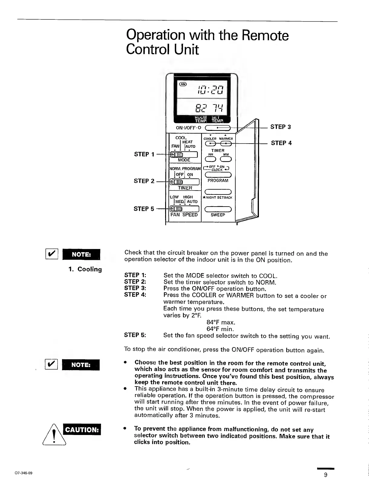 Sanyo KHS0921 - Operation with the Remote Control Unit; Cooling